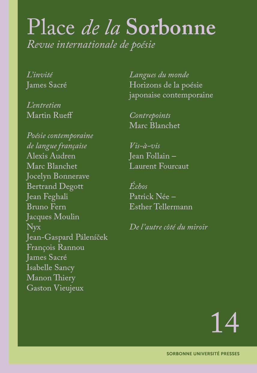 Place de la Sorbonne, revue internationale de poésie contemporaine française et étrangère, vous convie pour fêter la parution de son numéro 14.